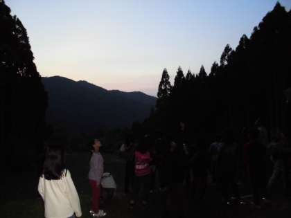夕食,そしてお風呂に入った後,ナイトハイクまでの空いた時間に疲れた体を休めるどころか,鬼ごっこで汗を流して走り回った子どもたちです。ナイトハイクでは,口を閉じ耳を澄ませ,肌で感じながら山の家の生き物や自然を満喫しました。