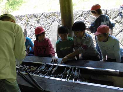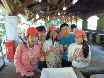 くしをさし,焼きあがるのをじ〜〜っと見つめながら,お行儀よく待つ子どもたち!