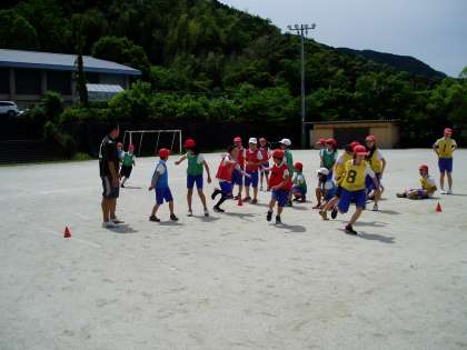 5年生は体育科の学習でリレーに取り組んでいました。まだ始めたばかりですが,4年生までの学習を振り返りながら,バトンパスの方法を思い出して活動しています。