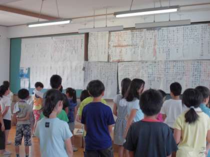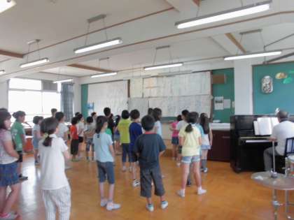 昨日から6年生が修学旅行に出かけ,いつもより少しひっそりとした感がある学校でしたが,1時間目が始まると心地のよい歌声が学校中に聞こえてきました。