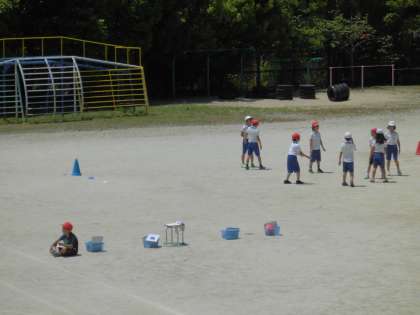 一雨ごとに暑さを増すこの時期,今日は朝から暑い日差しの中,運動場では3年生が,プールでは1・2年生が,日差しに負けず体育の学習に励み楽しんでいました。