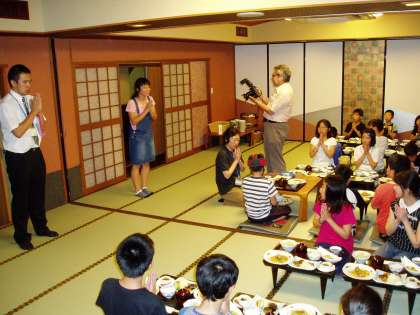 午後6時,お腹もすいてきたところで夕食の時間になりました。名古屋名物を多く取り入れたメニューに子どもたちも大満足でした。