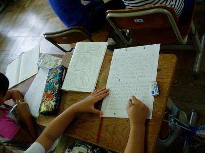 3年生は,国語科の時間に紹介文を書く練習をしていました。インターネットなどで見つけた記号(リサイクルマークなど)の意味を紹介文にしています。