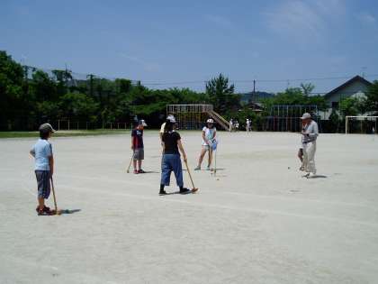 今年度も大勢の地域指導者にお世話になりながら,グランドゴルフの練習が始まりました。夏には醍醐・山科少年補導委員会が主催される大会もあるので,優秀な成績が収められるように練習を重ねます。