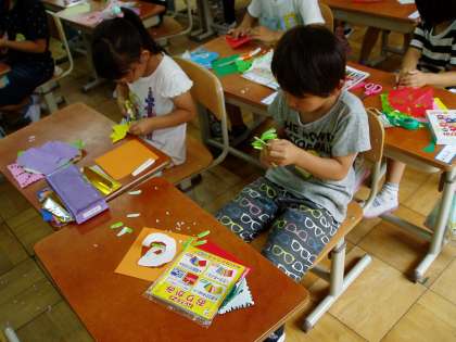 子どもたちは,細かなところも上手にハサミを使って切り取り,不思議な模様に歓声をあげていました。