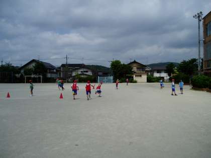 5年生の体育は,久しぶりに運動場でリレーのバトンパス練習をしていました。ここのところ水泳学習が続いていたのですが,夏休み明けの運動会を見据えて練習が始まったようです。水分補給や休憩をはさみながら取り組んでいます。