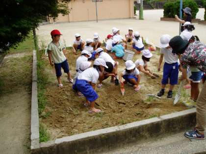 今日は,固まっている砂場をみんなで掘り返し,柔らかくするところから始めていました。
