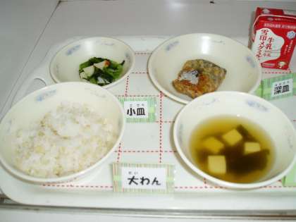 今日の給食は『さばのたつたあげ』『かまぼこと小松菜のいためもの』『すまし汁』でした。何と言ってもパリッと皮まで香ばしく揚げられた『さばのたつたあげ』は,魚料理の中でも人気メニューの一つです。
