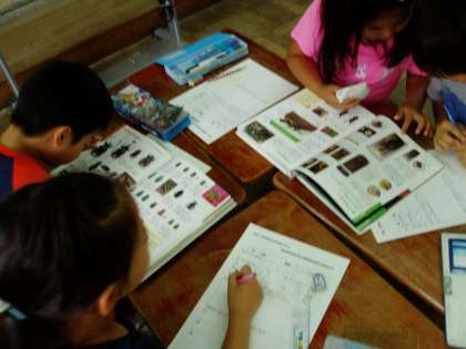 2年生は生活科の時間にクワガタやカブトなどの昆虫について調べていました。子どもたちは図鑑を広げ,昆虫の種類ごとに餌のやり方や育つ環境について熱心に調べていました。