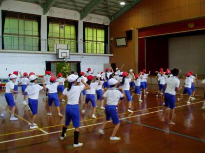 運動会で披露する踊りの練習に力が入っています。日を追うごとに踊る動きが大きくたくましくなってきています。