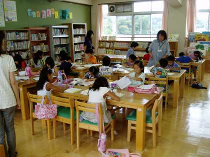 夏休みが明け,土曜学習も再開(9月3日)しました。午前9時から低学年は図書室で漢字学習に,高学年は,ふれあいサロンで英語活動に取り組みました。
