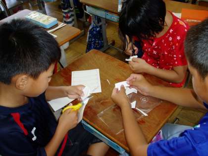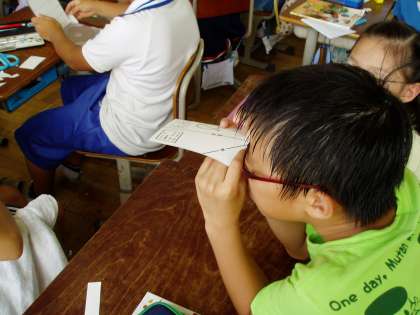 4年生は,理科の学習で月の観測を始めます。今日は,月を観測するための簡易観測器を手作りしていました。