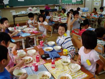 今日の給食は子どもたちが大好きな『プリプリ中華いため』でした。1年生の教室で,「今日の給食好きですか?」と尋ねると,たくさんの子どもたちが,「大好き」と元気に答えてくれました。みんな笑顔で,モリモリ食べていました。