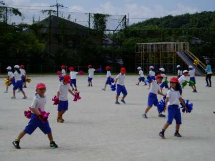 低学年の子どもたちは,運動場でダンスの練習を始めました。昨日まで体育館で行っていたダンス練習ですが,今日からは運動会当日と同様の場所での練習です。