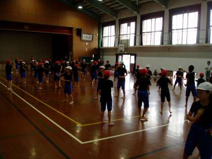 今日の午後,中学年の子どもたちは黒いシャツに身を包み,踊りの練習に汗を流していました。