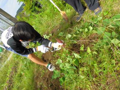 あすなろ学級の畑で,さつまいもの収穫をしました。