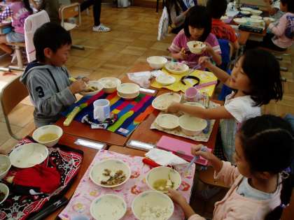 1年生の子どもたちから『しばづけちりめん』は,「ちょっとスッパイけど美味しかった。」という声が聞かれました。