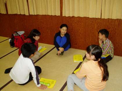 昨夜に行った『一日を振り返る会』の様子です。まず,個人で振り返りをした後,班ごとに明日の『めあて』などを話し合いました。