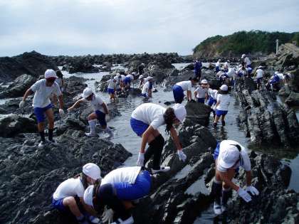 記念撮影をしてから,磯観察に出かけました。子どもたちからは,魚や貝,エビなどを見つけ大きな歓声があがっています。