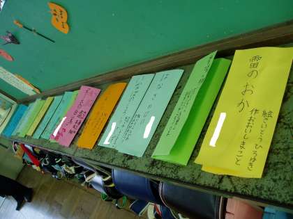 思い思いの本を選び,おすすめの情報を文章で書き表していました。