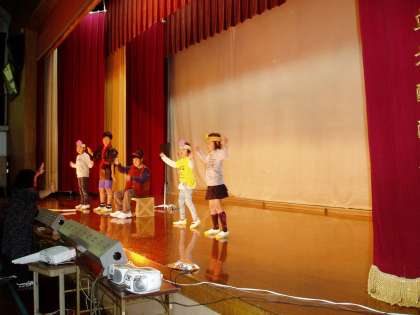今日は,あすなろ学級の子どもたちが,学習発表会に向けて舞台稽古をしていました。あすなろ学級は,劇と音楽『もしもの昔話』という発表をします。