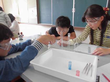 6年生の子どもたちは,安全に気をつけながらも,観察や実験で様々な推測や確かめを繰り返しながら,一見「水」に見えるものでも,気を付ける意識や,どのような水溶液か確かめる方法を学び進めています。
