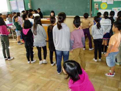 4年生の子どもたちは,教室で学習発表会の練習をしていました。今日は,それぞれの動きを確認したり,劇中で合唱する歌の練習をしていました。