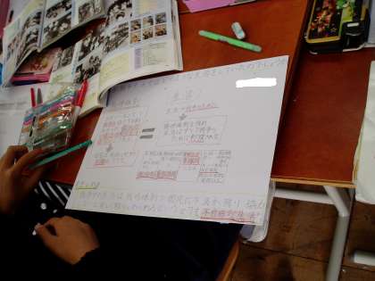今日の社会科は,この単元で一人一人が学び取ったことを大きな画用紙の両面に,『まとめる』という学習活動をしていました。