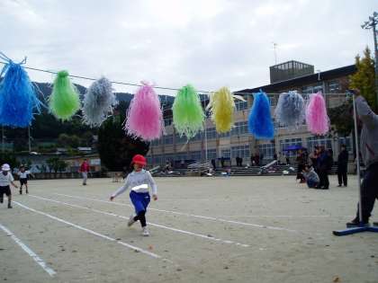 開会式の後は,徒競走で力いっぱい走ったり,交流競技で日野小学校の友だちと一緒に走ったりしました。