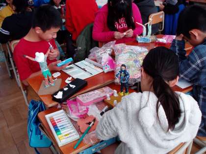 6年生の教室では,将来の自分を想像することを楽しみ『なりたい職業や夢』を立体で表す図画工作科の活動に取り組んでいました。