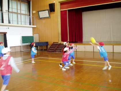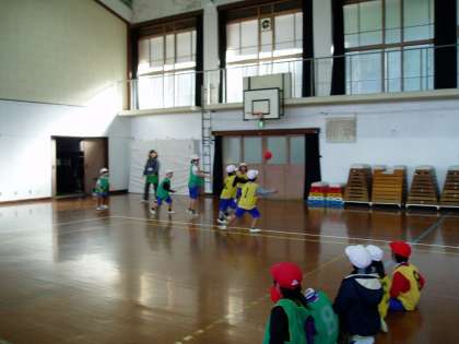 いつもと違う場所とルールに,1年生の子どもたちは,大喜びで活動していました。