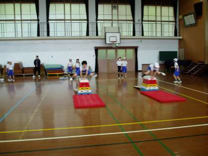 2回目になる今日は,開脚跳びから練習を始めていました。今回の跳び箱では,台上前転にも挑戦する予定です。