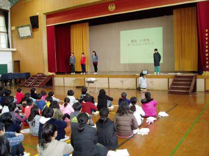 次に,給食委員会の子どもたちが,『食』に関わる大切な内容をスライドや寸劇,クイズを交えて分かりやすく紹介してくれました。