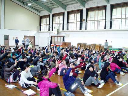 今日は,朝会から一日がスタートしました。最初に,今回完成したバスケットコートについて,校長先生からお話を聞きました。歴代PTAの方々や地域の皆様の温かい気持ちが詰まった贈り物であることや大切に使うための約束を確認しました。