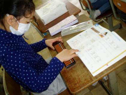 そろばんの持ち方,それぞれの位の位置,数の入れ方,払い方など,覚えることが沢山あります。