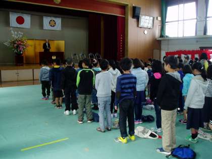 始業式では,まず,昨年度の最後の朝会で話をしたワールド・ベースボール・クラシックやサッカーワールドカップ アジア予選のことを思い出させました。