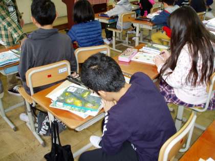 5年生の教室では,新しい教科書が配られていました。