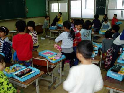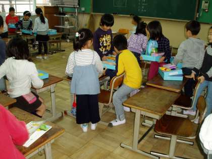 2年生の教室では,おひっこし(席替え)が行われていました。
