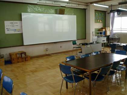 コンピュータ室がリニューアルしました。カーペット敷だった部屋を改装し,ピカピカの床にしました。黒板をホワイトボードに変えたり,カーテンも新調したりしました。