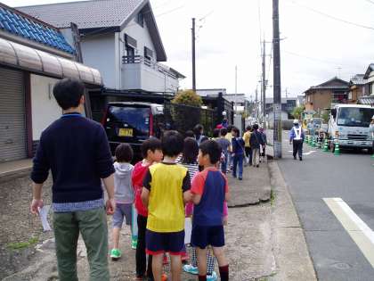 子どもたちに,「何処へ調べに行くの?」と質問すると,「今日は南に行きます。」と答えてくれたので,「どこから見て,南へ行くの?」と聞き返すと,「学校から見て,南です。」と,しっかり受け答えができていました。