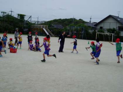 今日は,コーナートップという言葉や意味を知り,実際にリレーをしながらコナートップの順にコース取りをしていました。