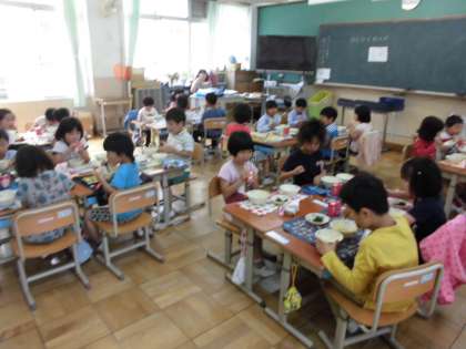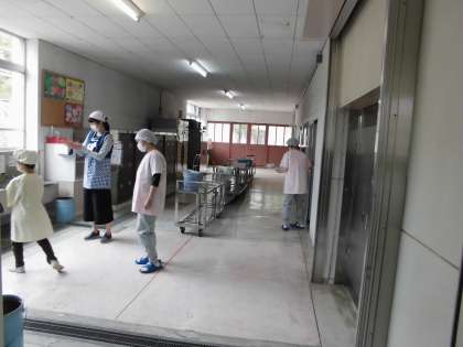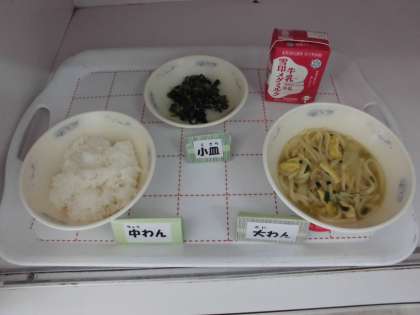 今日は,「カレーうどん」のメニューです。給食調理員さんは,みんなが給食をいただくときに麺が伸びないように,と時間を考えながら調理してくださっています。みんなのためにおいしく食べてほしい。…という優しい心くばりも一緒に…「いただきます。」