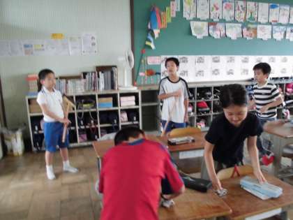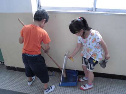 ほうきのはき方も,ちりとりの使い方も,お兄さんやお姉さんを見習ってだんだん上手になってきました。