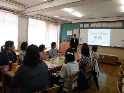 5月19日(金)給食試食会がありました。子ども達がお昼に食べる給食を試食していただいたり,給食の準備をする子ども達の様子を参観していただいたりしました。また,栄養教諭からは今日の献立の内容や,学校給食についてなど説明を聞いていただきました。最後に,参加された皆さんから感想やご意見などをアンケートに書いていただきました。