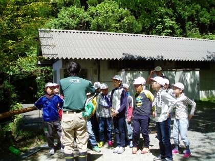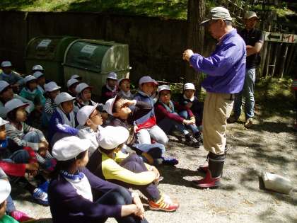 山の家の職員の方々から,たくさんのことを教えていただきました。子どもたちは,目を輝かせながら耳を傾けていました。