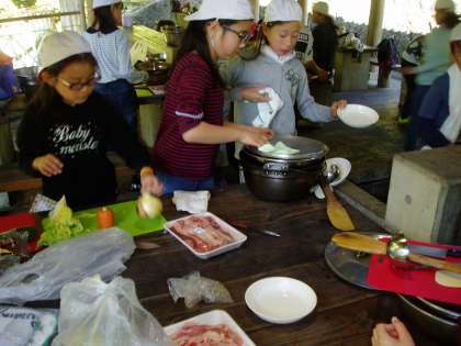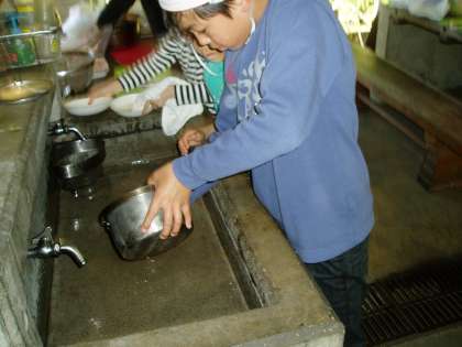 いよいよ調理のスタートです。それぞれの仕事を分担したり,お互いに助け合ったりしながら調理を進めています。