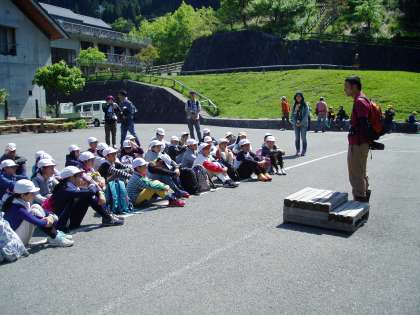 朝食を済ませた後,登山の準備をして玄関前に集合しました。よいお天気に恵まれて,元気に出発しました。