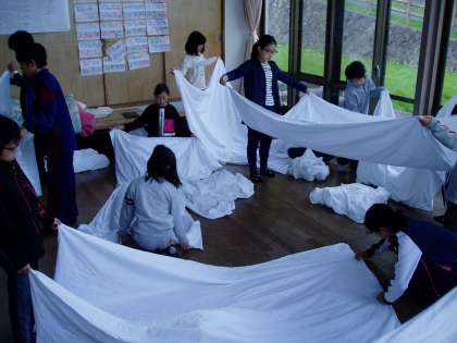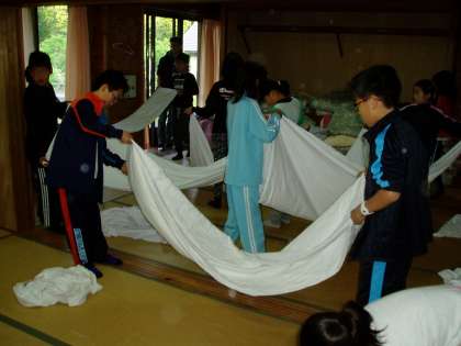今日は山の家野外活動の最終日です。起床後に,洗面を済ませて3日間お世話になったシーツを丁寧にたたみました。