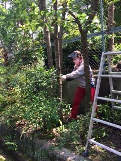 学校の周りには大きな木がたくさんあります。でもあまりに多くの木や葉があると,安全の面で伐採や剪定が必要になります。本校の管理用務員さんは子ども達のためにと高い木にも登り,汗をかきながら伐採や剪定をしていただいています。切っていただいた後は,風通しも見晴らしもよく,日差しも明るく見えます。