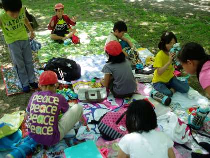 『京都御苑』では,一緒にお弁当をいただいたり,小川で遊んだりしました。その後,京都市役所まで寺町通りを歩き地下鉄で帰校しました。